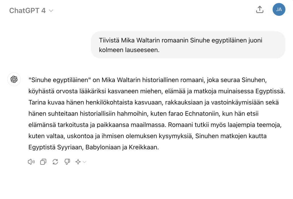 Toinen hyvä esimerkki nollakehotteesta olisi esimerkiksi: ”Tiivistä Mika Waltarin romaanin Sinuhe egyptiläinen juoni kolmeen lauseeseen.”